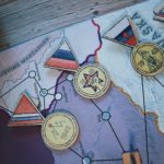 Danach platzieren sie auch ihren weißen Überwachungsturm auf eine beliebige Position auf dem Spielbrett und ziehen ihre erste Missionskarte von dem 1941-Stapel des Oberkommando der partisanischen Einheiten (OKE).