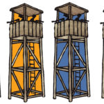 Wenn der Spieler den weißen Überwachungsturm erreicht, zieht er eine Spezialmission-Karte.